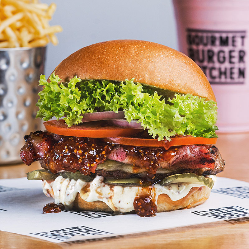 ·1 hamburger embryo. ·Yongyou beef pie 150 grams per piece. ·2 slices of bacon. ·2 slices of lettuce. ·1 tomato. ·sour papaya 2 pieces. ·1 gouda cheese slice. ·Ketchup con moderazione. ·Mustardo del miele con moderazione. | Passaggio 1: scongelare la pattie di manzo il giorno prima, mettere in una friggitrice a 200 ℃ per 5 minuti, girare e coprire con fette di formaggio (fette di formaggio) e cuocere per altri 3 minuti. Passaggio 2: polpette arrosto di manzo mentre friggi la pancetta. La pancetta di Sam è bianca, non è necessario olio e costringono delicatamente il grasso a fuoco minimo. Friggere la pancetta fino a quando non è arricciata e marrone. Ha lo stesso sapore anche se lo friggi nel burro. Passaggio 3: immergere lattuga in acqua salata, taglio di pomodoro e papaia acida. Passaggio 4: friggere le fette di pomodoro e impasto di hamburger nell'olio di pancetta. Passaggio 5: scolare la lattuga, tagliare la maniglia dura e verde chiaro, non solo un bel gusto è migliore. Passaggio 6: Metti la senape al miele e la salsa di pomodoro sui due hamburger e li assembla nell'ordine del fondo di hamburger - lattuga - fetta di papaia acida - tortino di formaggio - pancetta - lattuga - fetta di pomodoro - top dell'hamburger e fissarli con i bastoncini . |
